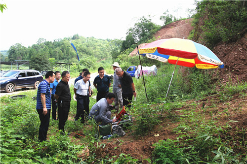 ??? 8月7日上午,鎮(zhèn)巴縣長嶺鎮(zhèn)依然是空氣潮濕、天氣悶熱。檢查組前往漢中市鎮(zhèn)巴縣長嶺鎮(zhèn)望月村,對地質(zhì)調(diào)查所一部承擔的《陜西省鎮(zhèn)巴縣三元-長嶺地區(qū)鉀鹽預查》100km的1:2.5萬重力剖面勘查項目進行了檢查。該項目主要任務(wù)是:結(jié)合1:20萬重力圈定的低重力值異常區(qū),開展重力剖面勘查,進一步確定鉀鹽濃集中心與鹽構(gòu)造,初步判斷規(guī)模、分布特征,為優(yōu)選鉆孔提供依據(jù)。該工區(qū)山高陡峭、叢林密布,勘查工作異常艱難。